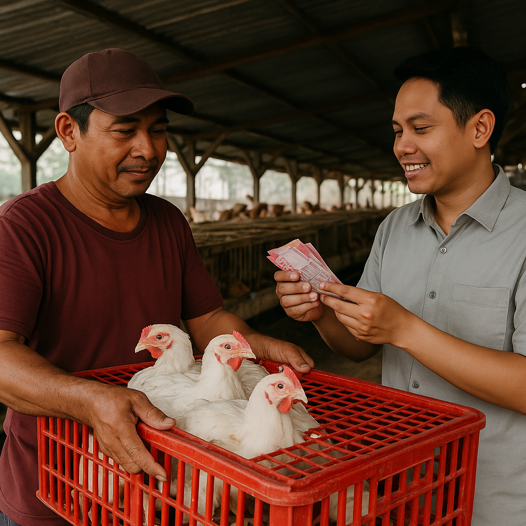 Menjual ayam jantan langsung dari kandang kepada broker atau bandar.
